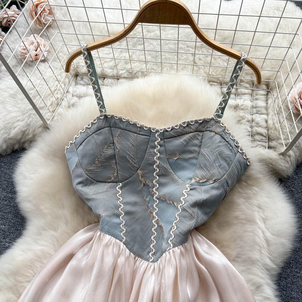 Mesh splicing suspenders tube top dress women's summer new French temperament Hepburn style waist birthday dress skirt