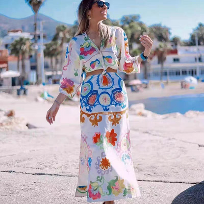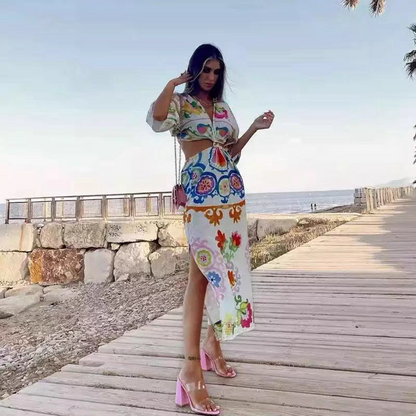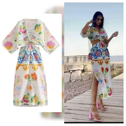 European and American style trend temperament new flower pattern digital printing linen dress