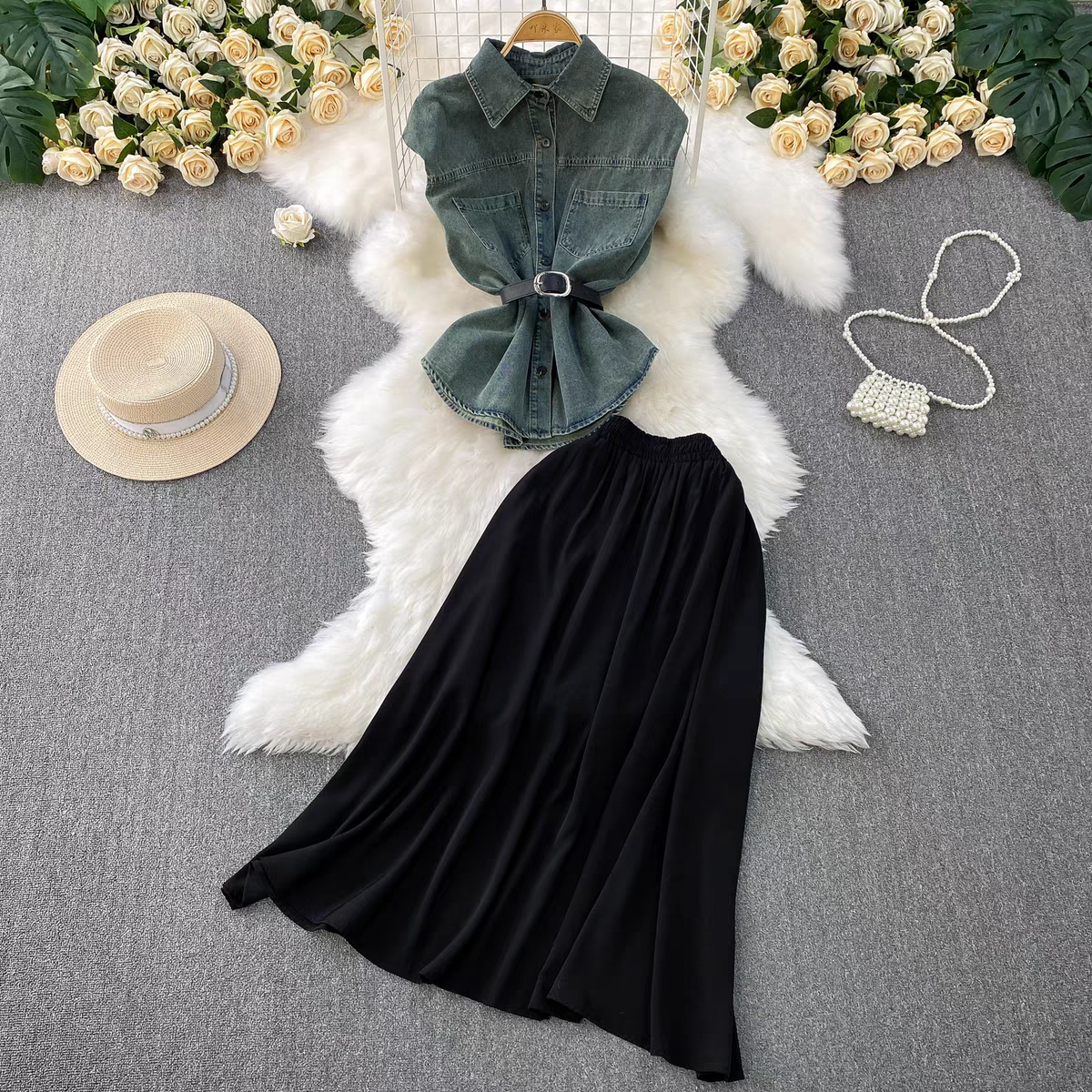 Cherry Summer Denim Two Piece Set